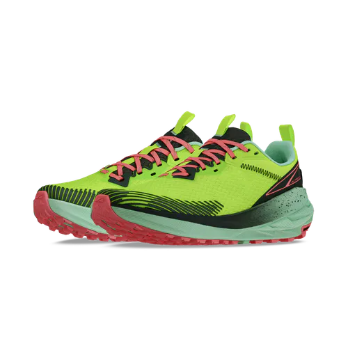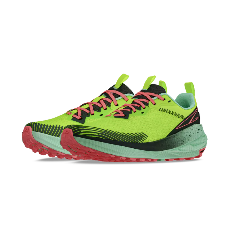 Experience a new high in a shoe designed to deliver trail running euphoria with an effortless stride. It’s lightweight, grippy, and focused on performance. We updated the mesh upper to help improve breathability and added a new lacing eyelet, designed to improve fit. Go ahead and kick rocks because we pumped up the TPU overlay to help increase toe protection coverage and durability. Easily attach a Trail Gaiter, made to help keep your feet clean from debris, with an integrated GaiterTrap™ detail. It’s got lightweight, responsive midsole foam to keep you comfortable on all terrain, and a grippy MaxTrac™ outsole designed for traction and durability. A low 4mm drop and rocker shape geometry encourage an efficient toe-off and a smooth, quick roll through your stride. With a roomy toe box and secure midfoot, you get plenty of room to help your toes move more freely. Planning a wild day on the trail? Send it in a shoe designed to deliver.