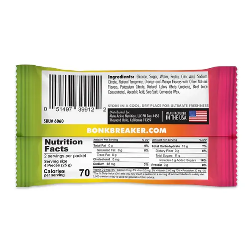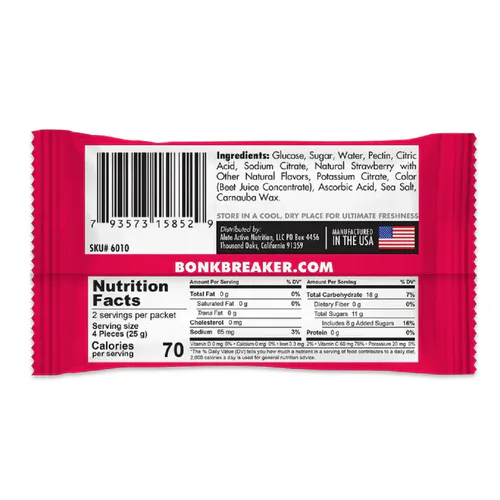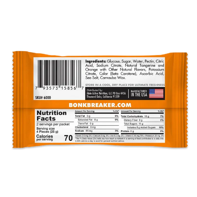 Bonk Breaker Energy Chews are a delicious, nutritious snack boasting over 100% of your daily vitamin C needs plus 170mg of electrolytes per pack.