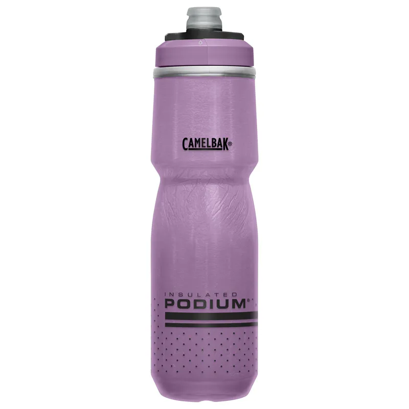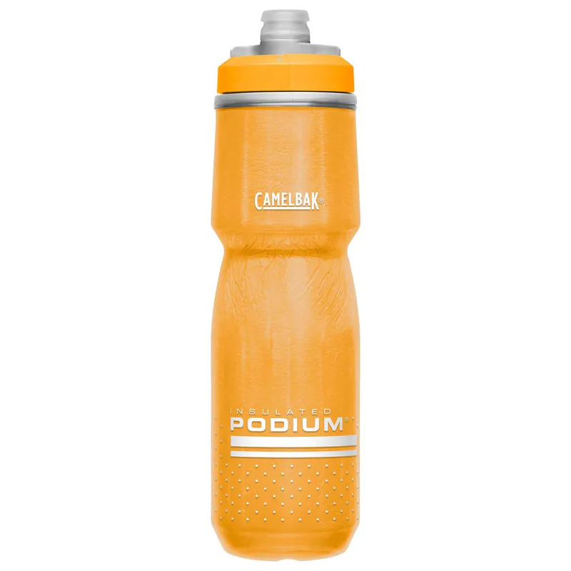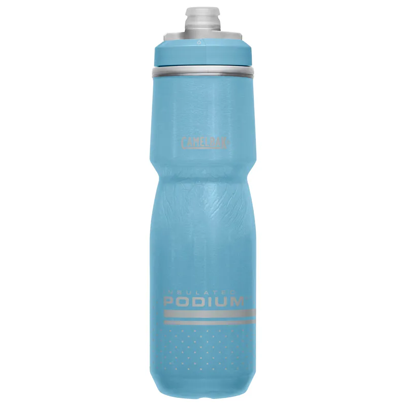 Derived from superior materials including Trutaste Polypropylene, and featuring double-wall insulation, the CamelBak Podium Chill Insulated Water Bottle is the perfect cold-storage water bottle for cycling adventures. Keeping your body properly hydrated and improving your on-road performance is simplified thanks to this revolutionary sports bottle. Cycling enthusiasts have for years trusted CamelBak to provide them superior bottles for water that are optimized for peak performance. And the Podium Chill bike water bottle continues to elevate CamelBak as the best of the best in the cycling world. This premium bicycle water bottle has been reengineered to securely fit in a variety of bicycle bottle cages. The water bottles are easy to squeeze, allowing you to take in more water with less effort. Our CamelBak reusable sports water bottles are engineered with a high flow, self-sealing cap, which maximizes flow rate while reducing spills and splashes. The Podium Chill is also 100% free of BPA, BPS, and BPF.