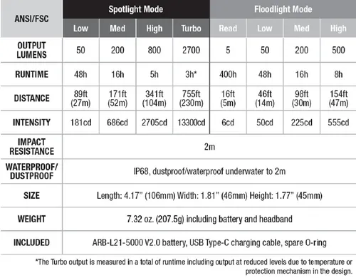 Lighting Modes: Eight modes including four spotlight levels and four neutral light floodlight brightness levels