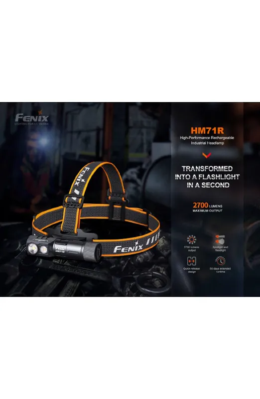 The Fenix HM71R Rechargeable Headlamp features a powerful spotlight with a maximum of 2700 lumens and a maximum beam distance of 755ft (230m).