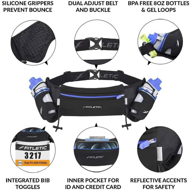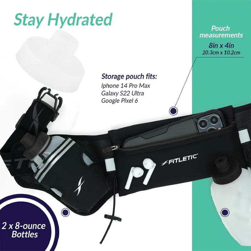 Fitletic's ergonomic design contours to your body to eliminate bounce and allows for single-handed access of bottles.