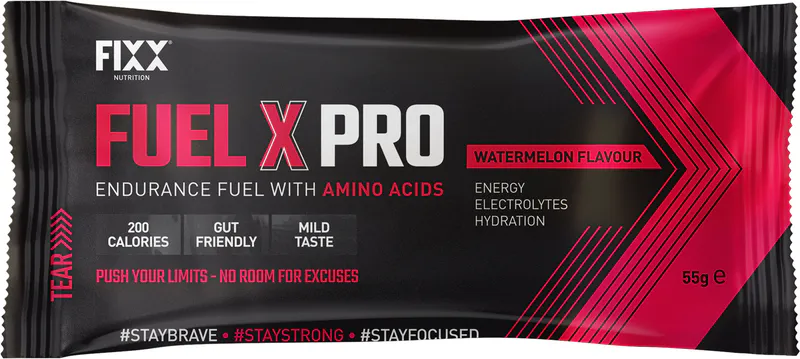 The ELECTROLYTES in Fuel X are formulated to replace everything you lose during exercise. No sticky bars, chews or gels needed! Fuel X Pro is a superior source of nutrition as it also contains premium amino acids for improved performance and endurance.