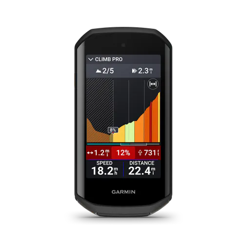 See remaining ascent and grade when climbing on every ride so you can gauge your effort and view nearby climbs on the map.