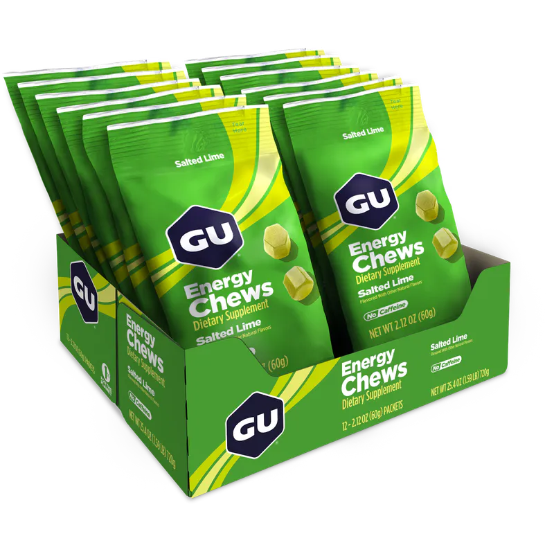 GU Energy Chews are crafted to supply both energy and key nutrients like electrolytes and amino acids to keep you feeling strong and energised. Delicious, mouthwatering flavors help you stick to your nutrition plan, so you can keep going. Energy Chews have similar nutrients per serving to the original GU Energy Gels, delivering the energy you need in chewable, bite-sized pieces.