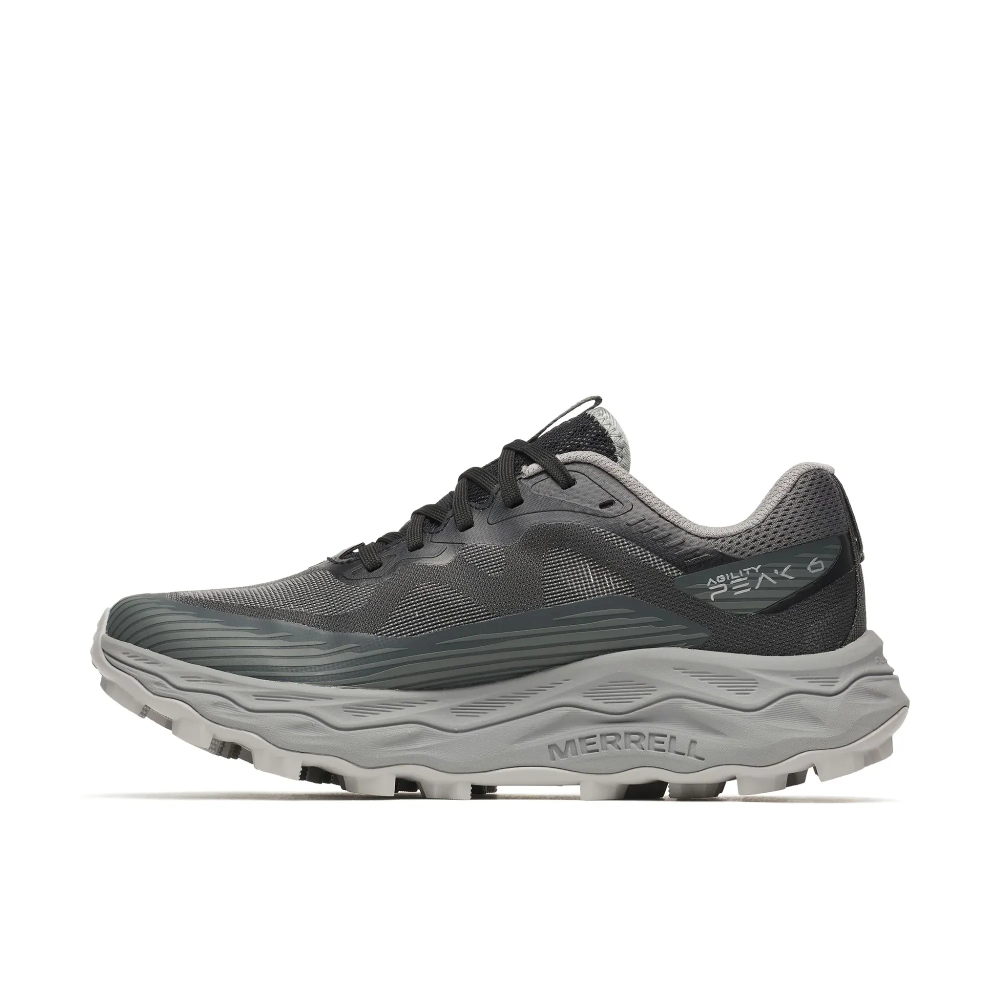 Designed to be a trail runner’s most reliable tool in the most unpredictable sport, the Agility Peak 6 delivers better stability, energy return, and traction for long miles on rugged trails. Merrell’s resilient FloatPro™ foam midsole delivers exceptional energy return while the added full-length FlexConnect™ technology maintains stability over the long haul. A forefoot rock plate shields against erratic terrain and a Vibram® Megagrip outsole with Traction Lug tech offers superior and unwavering grip on any surface.