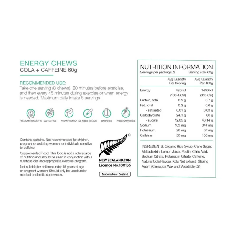 Supplemented food (Cola flavour): Contains caffeine. Not recommended for children, pregnant or lactating women, or individuals sensitive to caffeine. This food is not a sole source of nutrition and should be used in conjunction with a nutritious diet and an appropriate exercise program.
