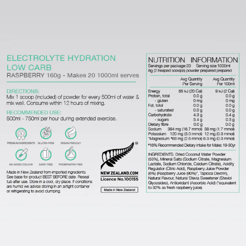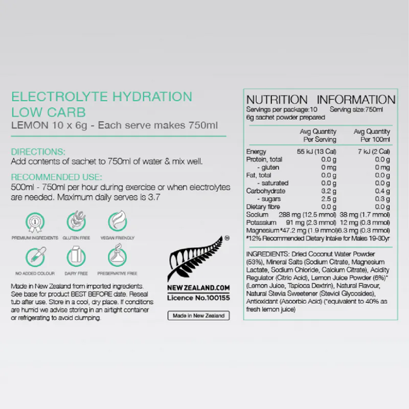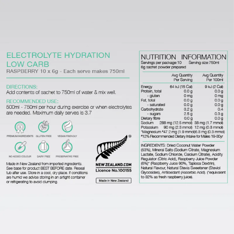 PURE Electrolyte Hydration Low Carb is a premium natural electrolyte drink specifically formulated for those wanting a low carbohydrate alternative to a standard sports drink.