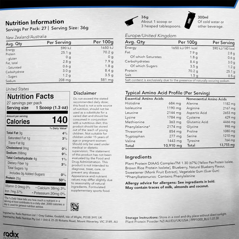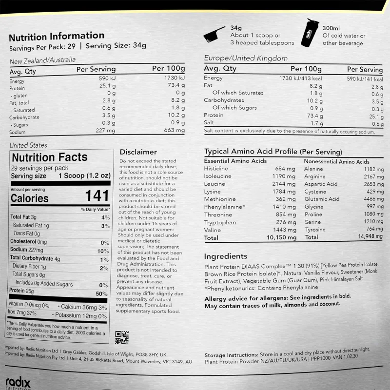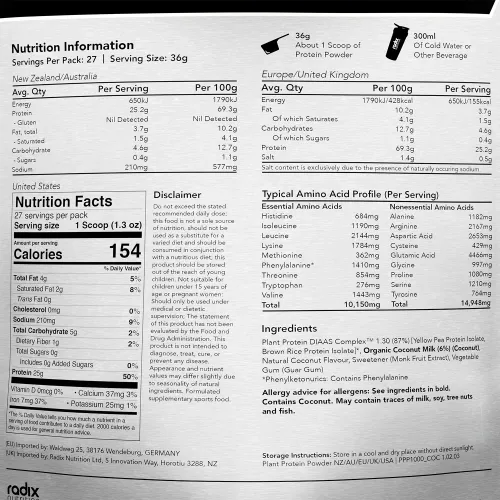 Radix Nutrition Plant Protein DIAAS Complex 1.30