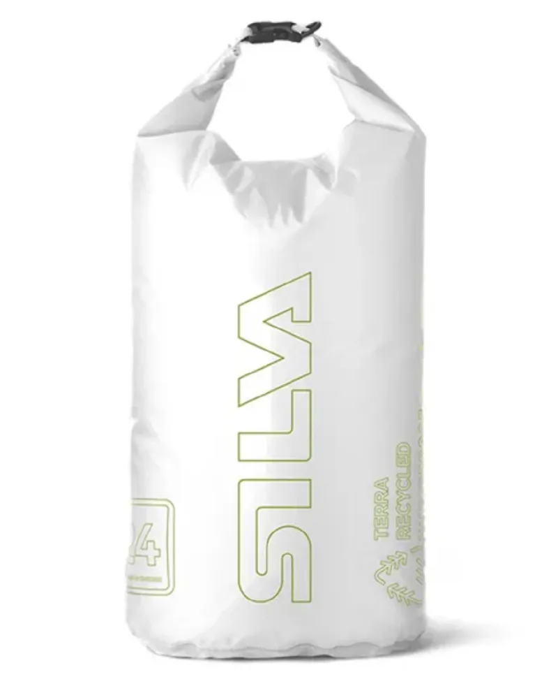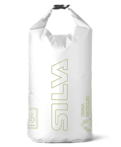 Terra dry bags are an updated version of the Silva R-Pet series that was designed in different colors and full color logotypes. With the Terra series, more efforts have been put in to make them as environmentally friendly as possible. Simply by reducing the resource-intensive coloring process to a minimum. The result is a non-dyed dry bag with an outlined logotype as the only color element.