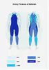 ● Notice that you need to size up if the wetsuit limits your breathing or arm movements in the water.