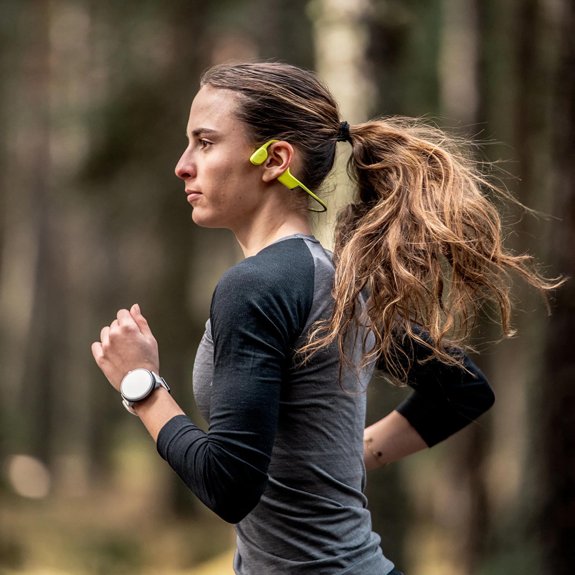 Open-ear technology allows you to listen to music and at the same time still hear your surroundings. Instead of traditional in-ear headphones, Suunto Sonic sits on your jawbone leaving your ear canal open to stay aware of the nature or traffic around you.