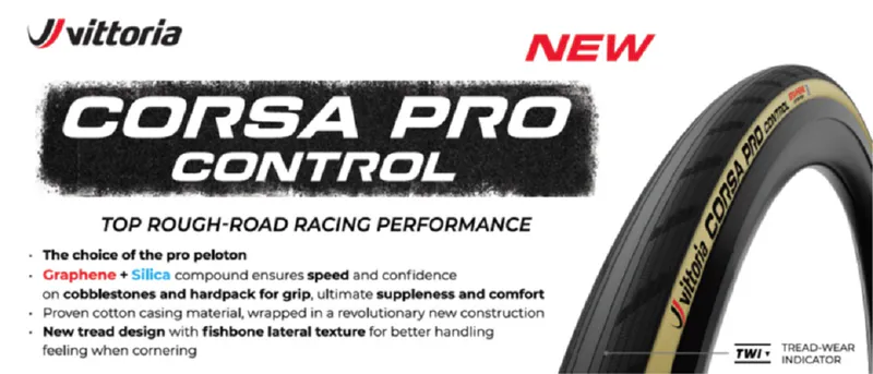 Corsa PRO Control features the innovative Graphene + Silica compound for improved tyre speed, durability, and grip; and a new fishbone tread design for better handling in corners. Corsa PRO Control is the pro riders’ choice at the Northern Classics and Strade Bianche.