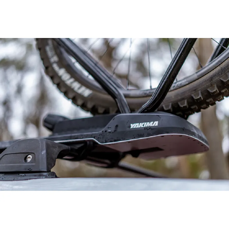 Secure, sleek, and simple to use, the HighRoad is Yakima’s newest premium upright bike mount. The adjustment-free hoop, with its TorqueRight™ tightening knob, loads a variety of bikes quickly and easily. The HighRoad secures the bike by the wheels for ultimate bike protection and the low-profile design minimises hatch interference. Universal mounting hardware fits most roof racks.